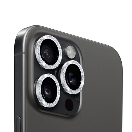 iPhone 15 Pro / 15 Pro Max Kameralinsskydd - Glitter / Silver