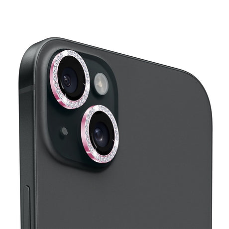 iPhone 15 / 15 Plus Kameralinsskydd med Rhinestone - Pink