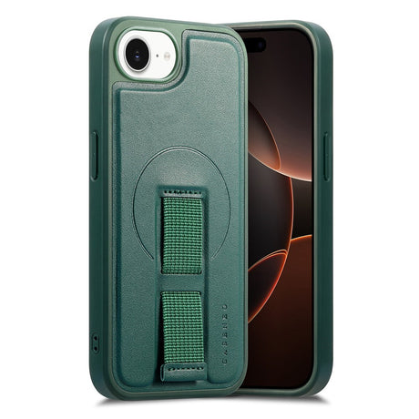 iPhone 16e Hård Plast Skal m. Konstläder Baksida & Fingerrem - MagSafe Kompatibel - Grön