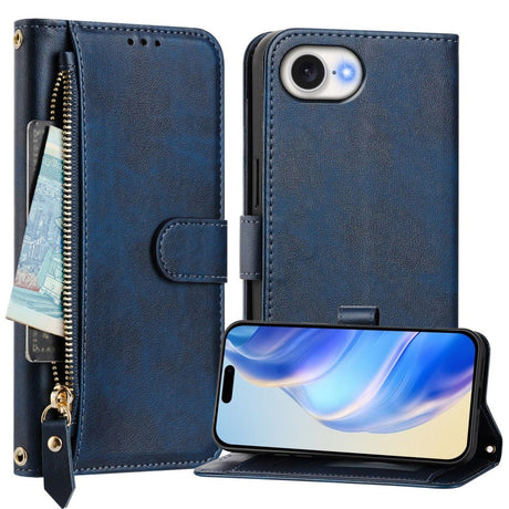 iPhone 16e Konstläder Flip Fodral m. Korthållare & Ställfunktion - Blå