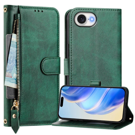 iPhone 16e Konstläder Flip Fodral m. Plånbok & Rem - Grön