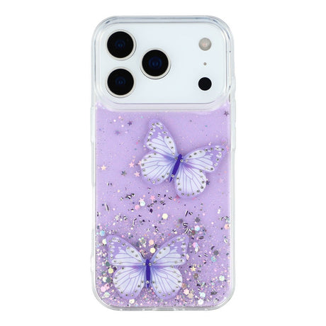 iPhone 17 Pro Flexibelt Plast Skal med Fjärilar - Genomskinlig / Lila