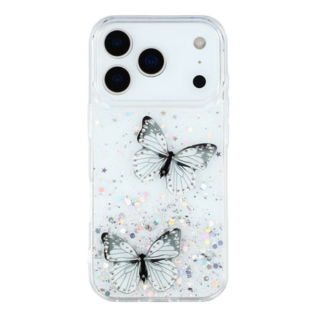 iPhone 17 Pro Flexibelt Plast Skal med Fjärilar - Genomskinlig / Svart
