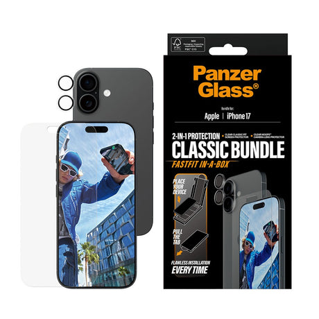 PanzerGlass iPhone 17 2-in-1 Classic Bundle - Skärmskydd + Kameralinsskydd - Genomskinlig