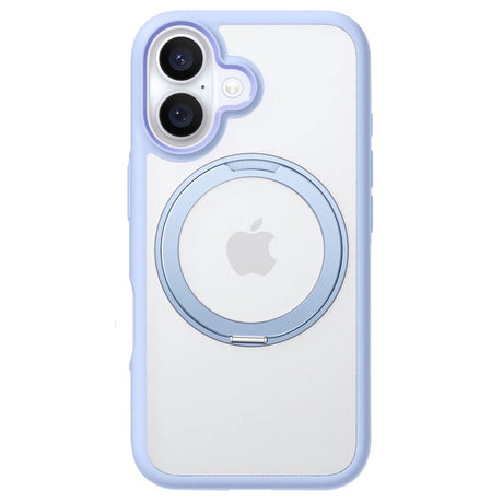 iPhone 16 Hybrid Plast Skal m. Roterbar Kickstand Ring - MagSafe Kompatibel - Transparent / Blå