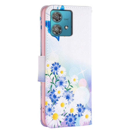 Motorola Edge 40 Neo Mönstrad Läder Plånboksfodral med Rem - Blå