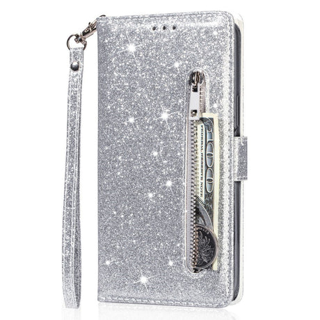 Samsung Galaxy A56 (5G) Glitter Flip Fodral m. Glidlåsficka & Ställfunktion - Silver