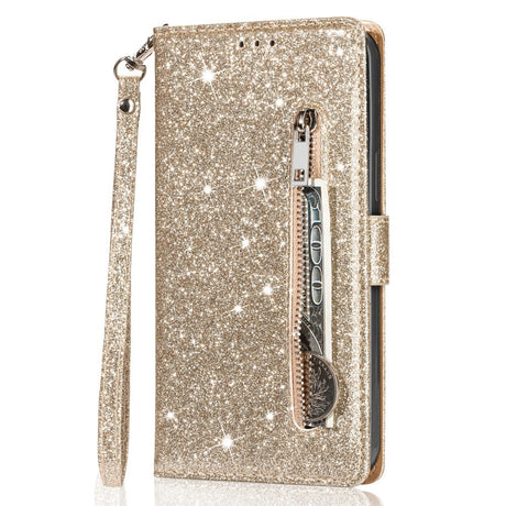 Samsung Galaxy A56 (5G) Glitter Flip Fodral m. Glidlåsficka & Ställfunktion - Guld