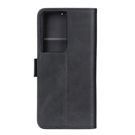 Samsung Galaxy S21 Ultra Konstläder Fodral med Plånbok och Stativfunktion - Svart