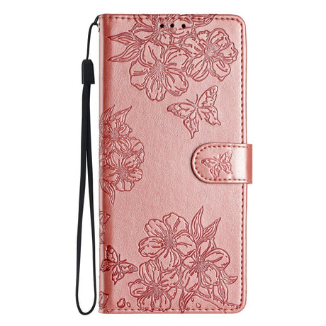 Stickad Crossbody-axelväska med Handrem (180 x 120 mm) - Rosa Blommor