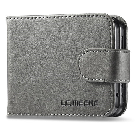 Samsung Galaxy Z Flip7 FE / Flip6 Konstläder Flip Fodral m. Korthållare & Ställfunktion - Grå