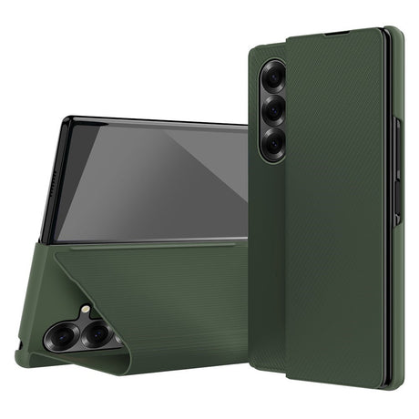 Samsung Galaxy Z Fold7 Konstläder Flip Fodral m. Textur & Ställfunktion - Grön