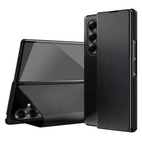 Samsung Galaxy Z Fold7 Konstläder Flip Fodral m. Textur & Ställfunktion - Svart