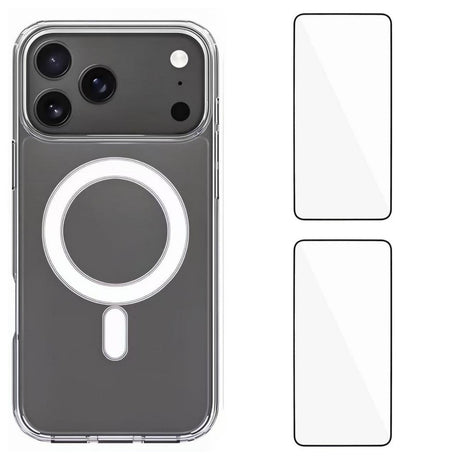 iPhone 17 Pro Max Hybrid Skal inkl. 2 x Skärmskydd - MagSafe Kompatibel - Genomskinlig / Vit