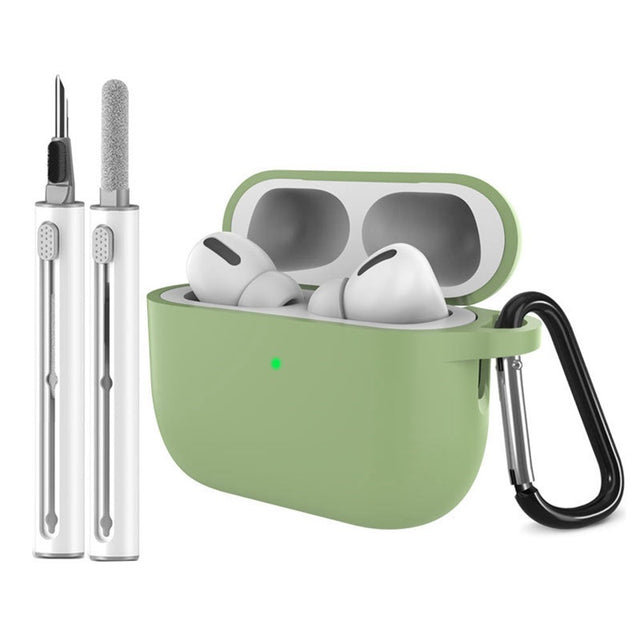 Apple AirPods Pro (3. gen.) Silikon Skal m. Karabinhake & Rengöringspenna - Matcha Green