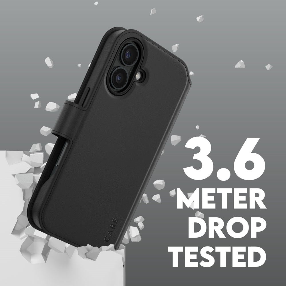 CARE by PanzerGlass iPhone 16 Feature Tango 2-i-1 Skal med Plånbok - Svart
