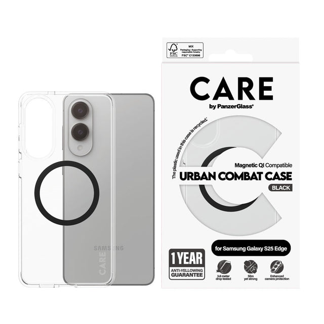 CARE by PanzerGlass Samsung Galaxy S25 Edge FLAGSHIP Urban Combat Skal - MagSafe Kompatibel - Transparent / Black