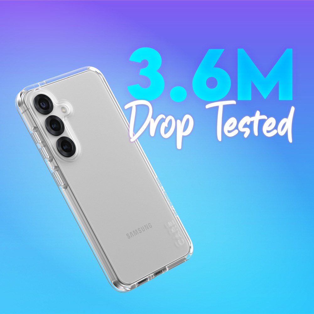 Det ultratunna, men ändå mycket starka skalet till Samsung Galaxy S25 har testats för att klara fall från upp till 3,6 meters höjd på alla hörn och vinklar, vilket gör det lämpligt för allt från vardagens utmaningar till träning och mer.