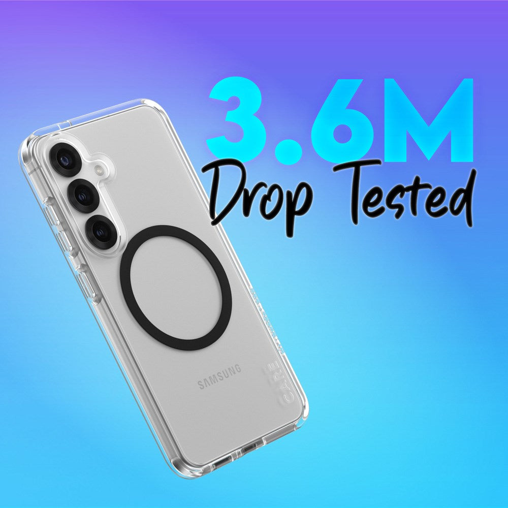 Det ultratunna, men ändå mycket starka skalet till Samsung Galaxy S25 har testats för att klara fall från upp till 3,6 meters höjd på alla hörn och vinklar, vilket gör det lämpligt för allt från vardagens utmaningar till träning och mer.
