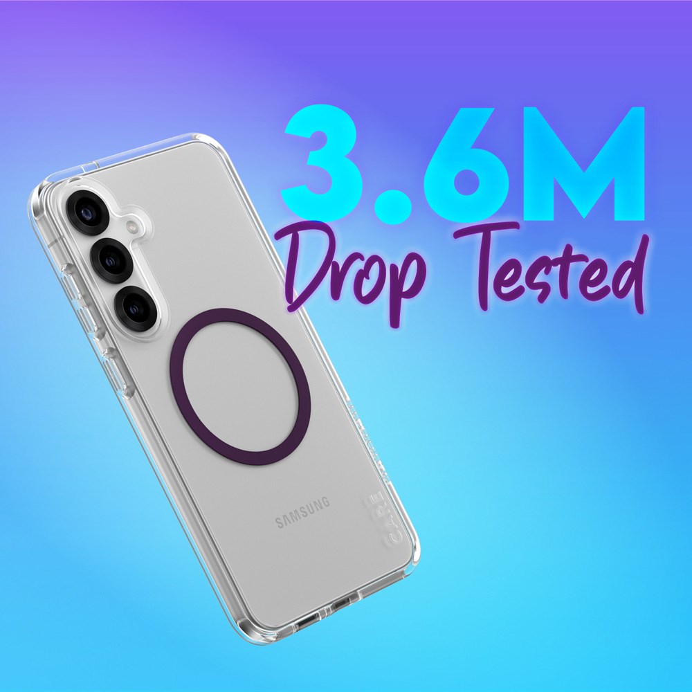 Det ultratunna, men ändå mycket starka skalet till Samsung Galaxy S25+ (Plus) har testats för att klara fall från upp till 3,6 meters höjd på alla hörn och vinklar, vilket gör det lämpligt för allt från vardagens utmaningar till träning och mer.