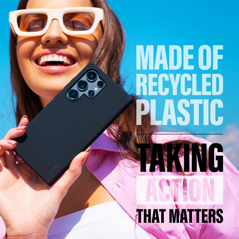 Här är ett Samsung Galaxy S25 Ultra-skal som erbjuder både en klassisk och elegant look samtidigt som ett bra skydd. Den är gjord av 100 % återvunnen flexibel plast med en mjuk, matt finish.