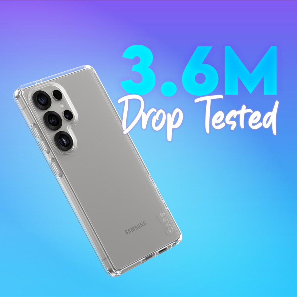 Det ultratunna, men ändå mycket starka skalet till Samsung Galaxy S25 Ultra har testats för att klara fall från upp till 3,6 meters höjd på alla hörn och vinklar, vilket gör det lämpligt för allt från vardagens utmaningar till träning och mer.