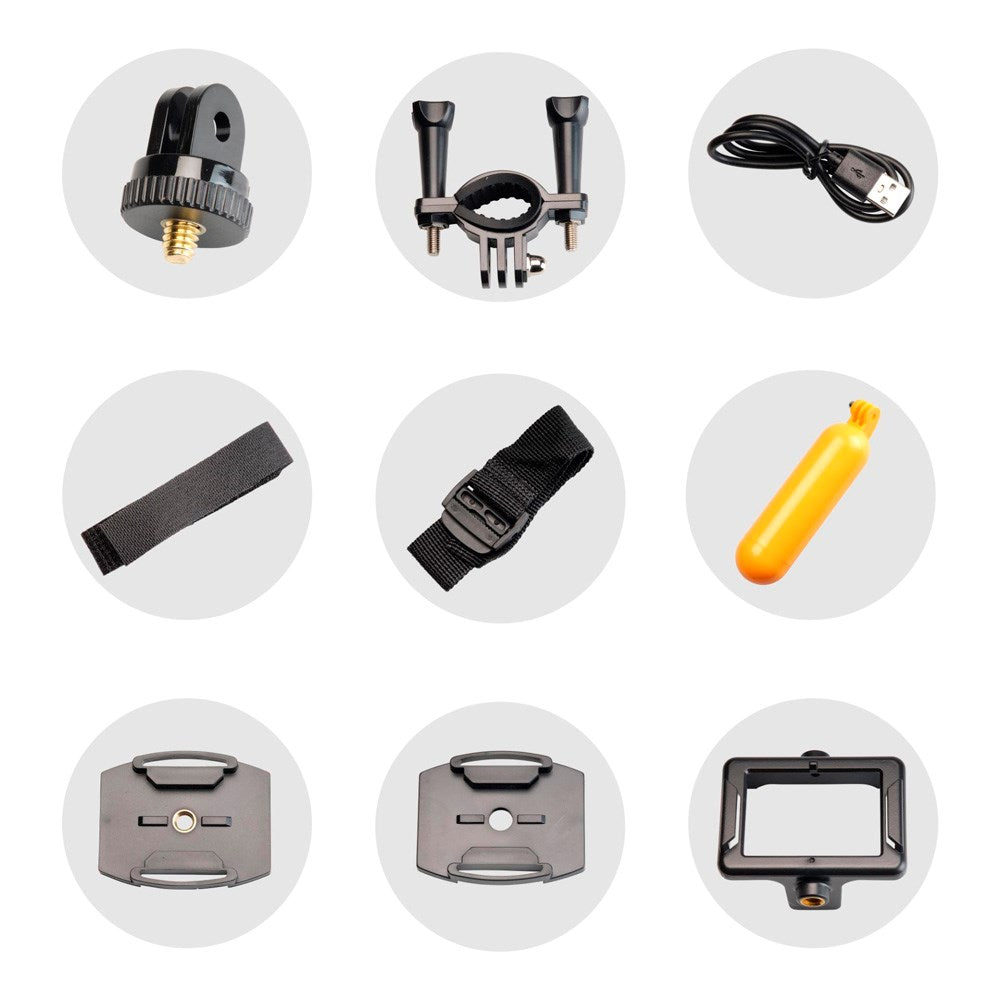 Oavsett om du dyker under vatten, paddlar kajak eller tar ett dopp, håller det vattentäta fodralet med IP68-klassning kameran säker och torr samt fullt fungerande. Det medföljande tillbehöret, som flyt, fästen och remmar, gör det enkelt att fästa kameran på hjälm, cykel, bräda eller ryggsäck, så att du kan vara redo för action på nolltid.
