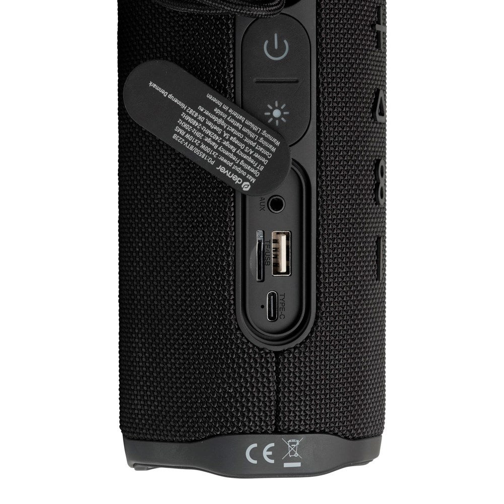 Upplev kraftfullt ljud var du än är! Denna trådlösa Denver Bluetooth-högtalare kombinerar stabilt ljud med stilfull belysning och robust design.