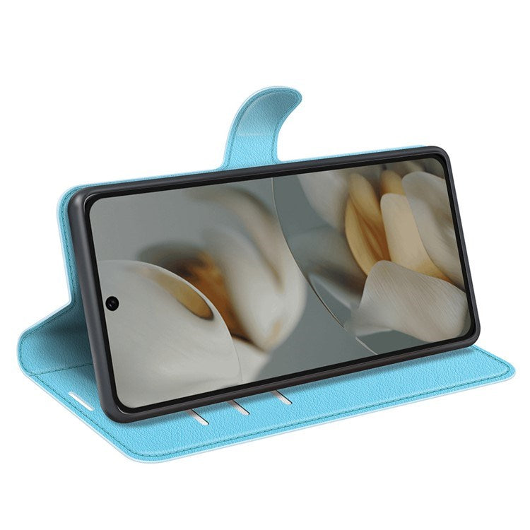 Fodralet är tillverkat av högkvalitativt konstläder med en elegant Litchi-textur, och på insidan är det förstärkt med flexibelt plastmaterial som säkerställer både stil och hållbart skydd för din telefon.