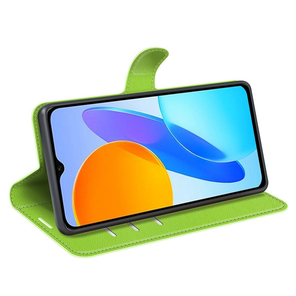 Honor X8 (5G) Konstläder Flip Fodral m. Korthållare & Ställfunktion - Grön