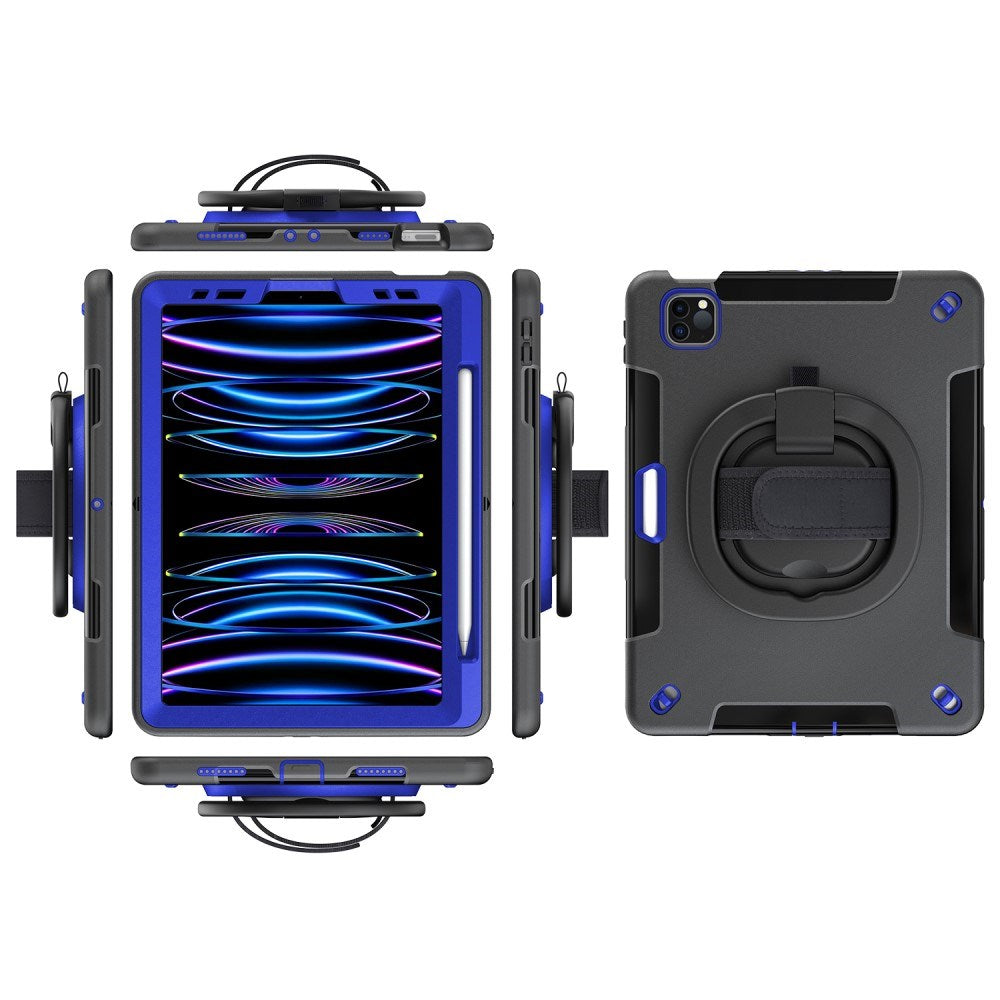 iPad Air 10.9-11" (2025-2020) / Pro 11" (2022-2018) Tåligt Skal m. Skyddsfilm & Handhållare - Svart / Koboltblå