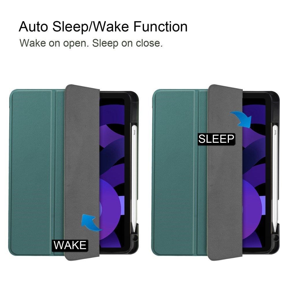 iPad Air 11" (2025 / 2024) Litchi Tri-fold Läder Fodral med Apple Pencil Hållare - Grön
