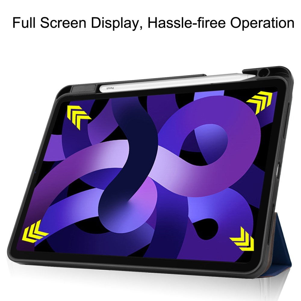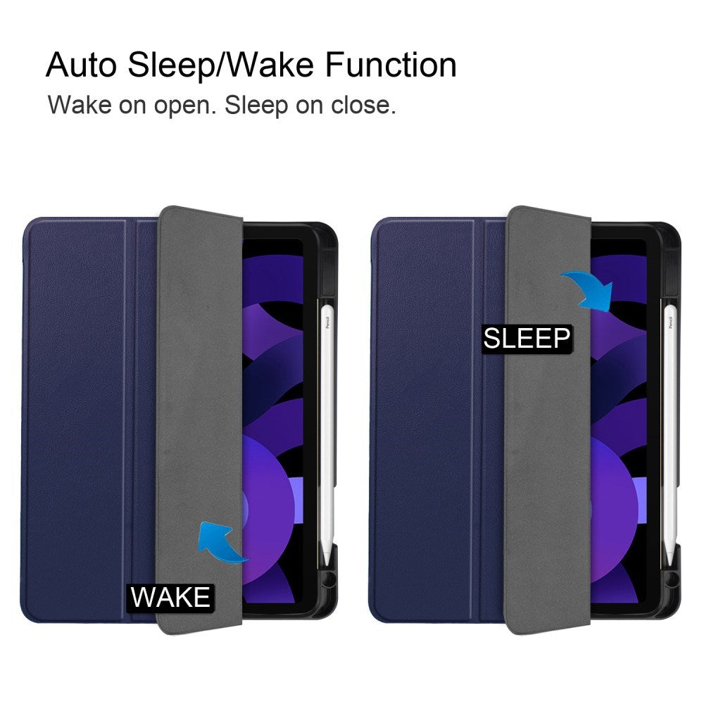 iPad Air 11" (2025 / 2024) Litchi Tri-fold Läder Fodral med Apple Pencil Hållare - Mörkblå