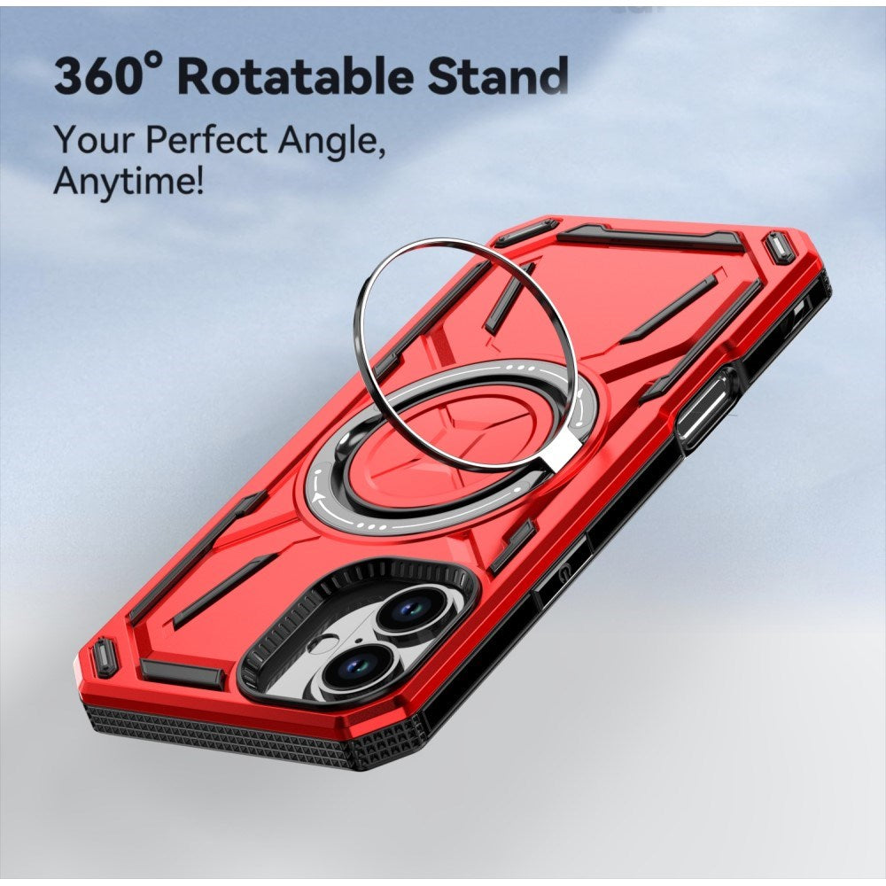 På baksidan av skalet finns en avtagbar metallring som förbättrar greppet och fungerar som ett stativ för att titta på filmer och serier. Ringen kan rotera 360° för maximal flexibilitet och kan enkelt justeras till önskad vinkel. Den är också magnetisk, vilket möjliggör enkel och säker fästning till olika enheter, som till exempel en bilhållare.