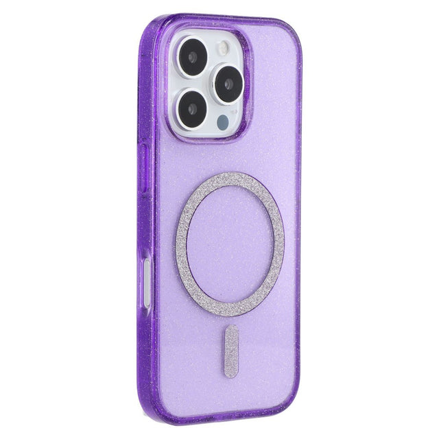 iPhone 16 Pro Max Plast Glitter Skal - MagSafe Kompatibelt - Lila