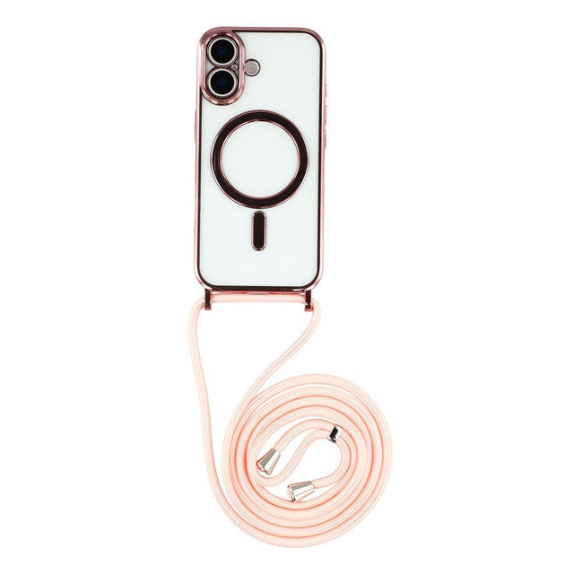 iPhone 17 Flexibelt Plast Skal med Justerbar Rem - MagSafe Kompatibel - Genomskinlig / Rosa