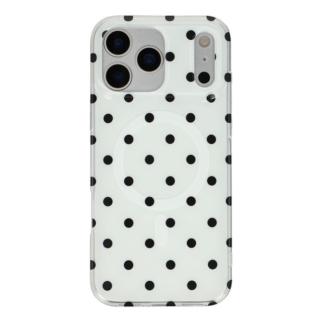 iPhone 17 Pro Hybrid Skal med Polka Design - MagSafe Kompatibel - Genomskinlig / Svart