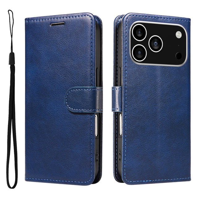 iPhone 17 Pro Plånboksfodral i Konstläder med Rem - Blå