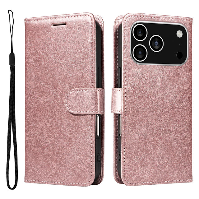 iPhone 17 Pro Plånboksfodral i Konstläder med Rem - Rose Gold