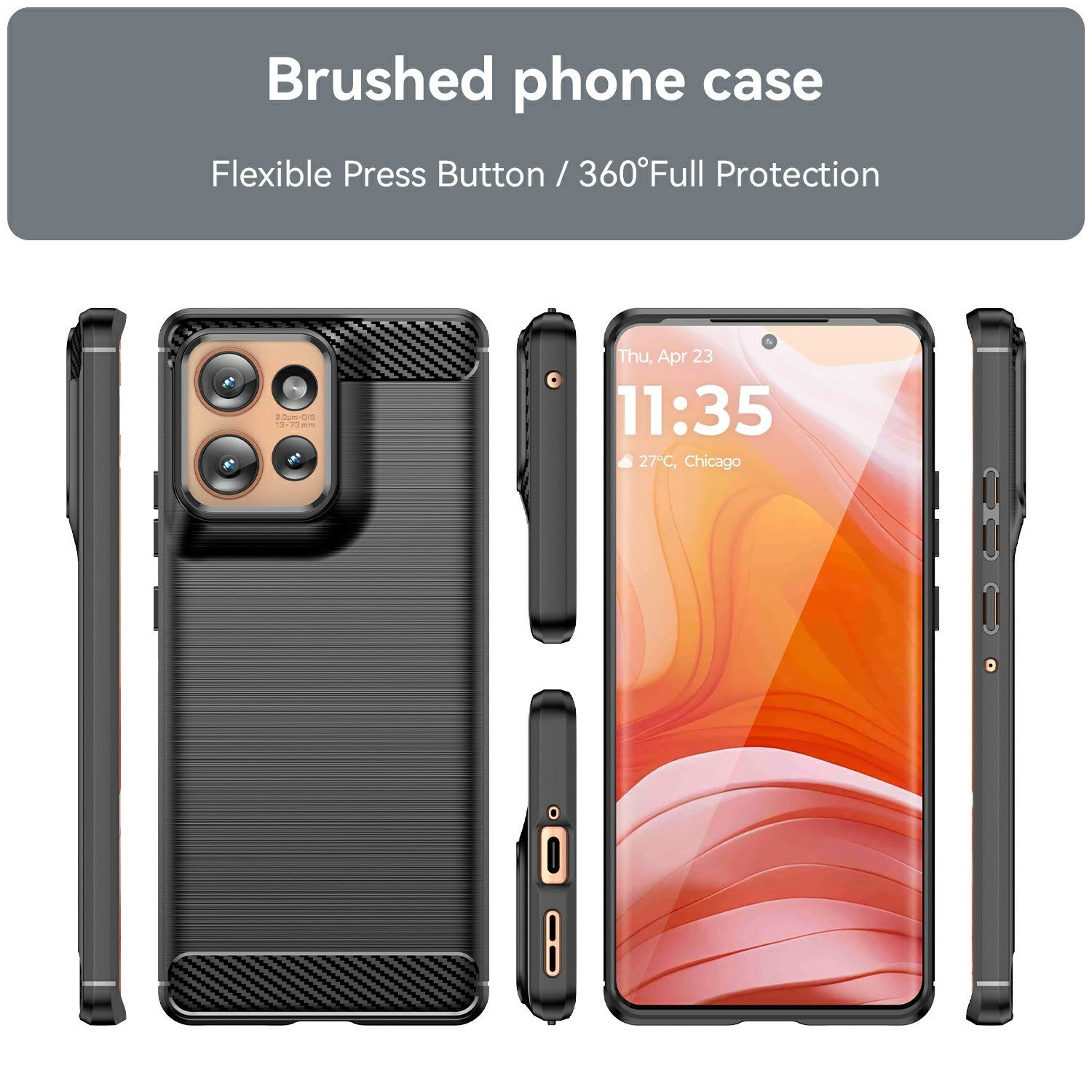 Ett flexibelt plastskydd för Motorola Edge 50 som ger bra skydd för din telefon. Detta Motorola Edge 50-skal har ett coolt kolfiberutseende på toppen och botten, kombinerat med en borstad metalllook. Du får ett bra skydd mot repor och skråmor med detta skydd.
