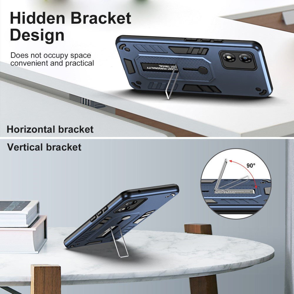 Motorola Moto E13 Tåligt Skal m. Fingerring & Stativ - Blå