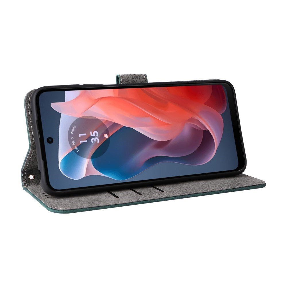 Motorola Moto G Play (2024) Läder Flip Fodral med Plånbok och Rem - Grön