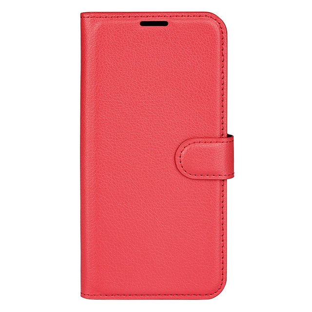 Fodralet är tillverkat av högkvalitativt konstläder med en elegant Litchi-textur, och på insidan är det förstärkt med flexibelt plastmaterial som säkerställer både stil och hållbart skydd för din telefon.
