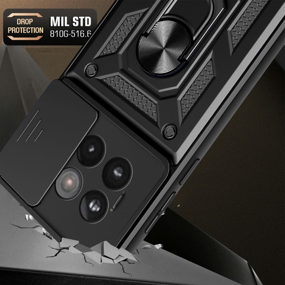 Med skydd i militärklass är skalet byggt för att tåla stötar och fall. Den rörliga linskyddet skyddar din kamera mot repor och skador. Dessutom har skalet en integrerad magnetisk metallplatta som gör det kompatibelt med bilhållare för säker montering i bilen (observera: bilhållare ingår ej).