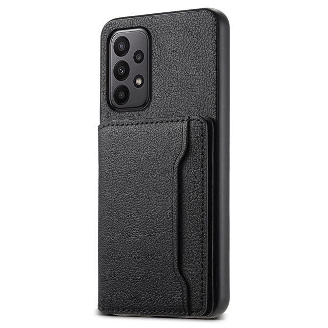 Samsung Galaxy A23 / A23 (5G) Hybrid Konstläder Skal med Korthållare - Svart