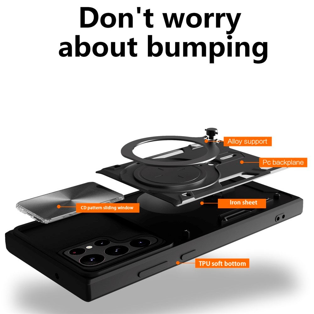 Samsung Galaxy S22 Ultra Hantverkar Skal m. Kickstand & Cam Slider - Blå