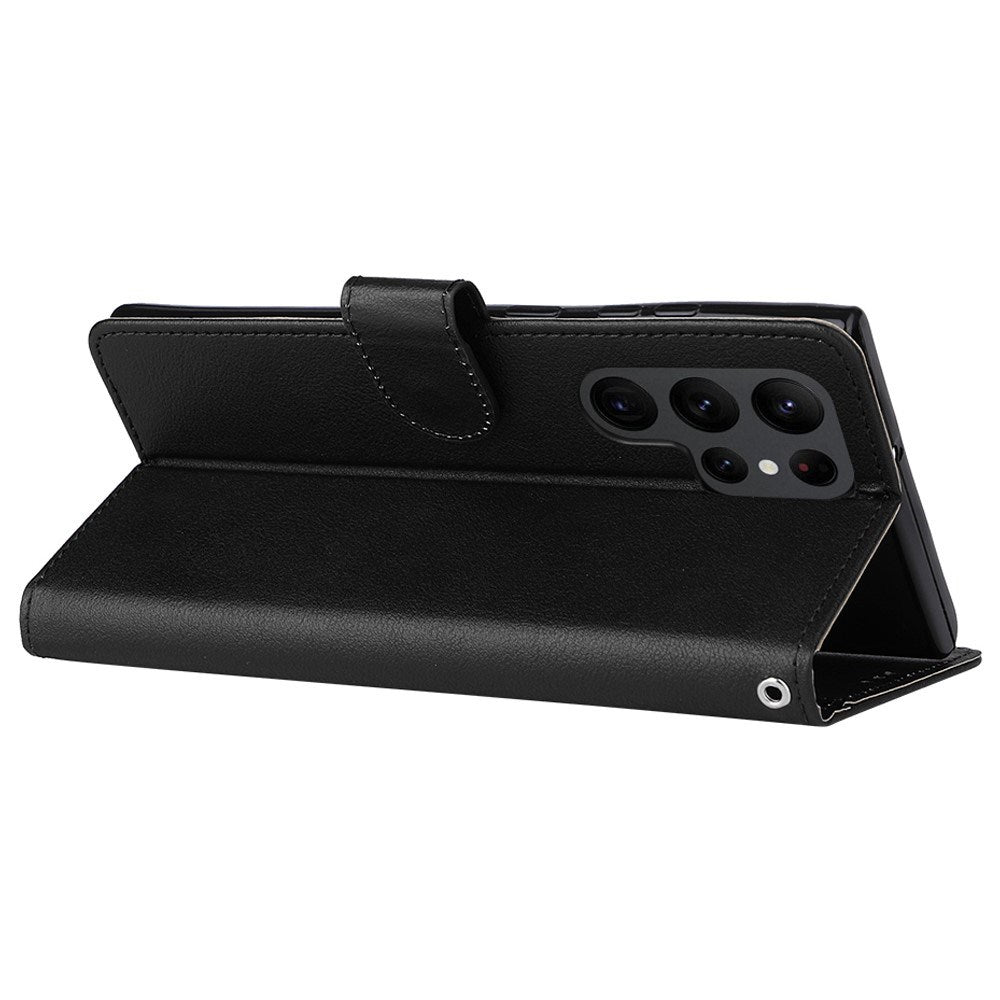 Samsung Galaxy S23 Ultra Konstläderfodral med Plånbok & Stativfunktion - Svart