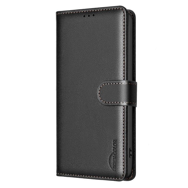 Samsung Galaxy S25 FE Konstläder Plånboksfodral med Ståfunktion - Svart