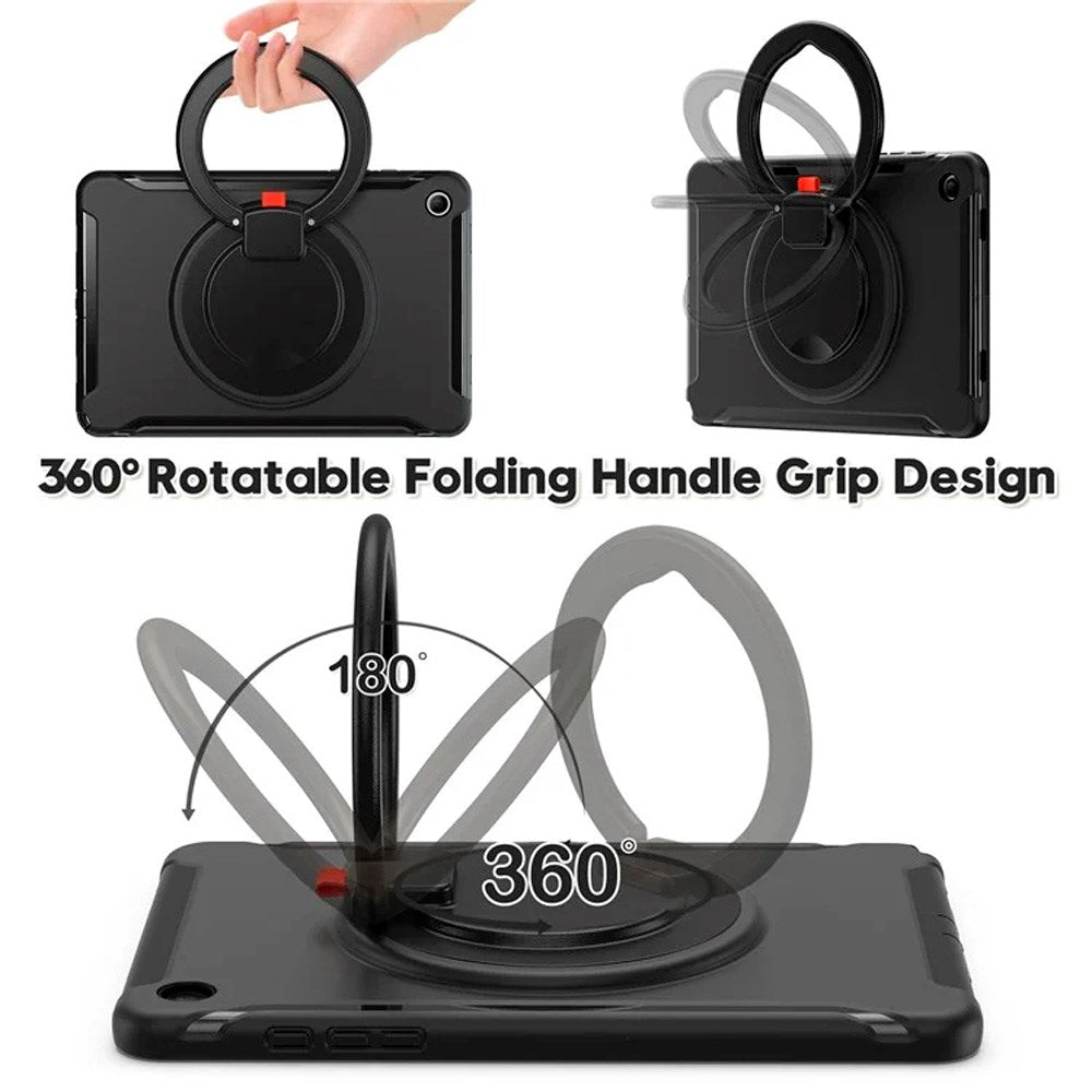 360° Roterbar Kickstand: Inbyggd kickstand som kan roteras 360 grader, vilket möjliggör handsfree-visning både i stående och liggande läge. Kickstanden fungerar även som ett handtag för enkel och säker transport.