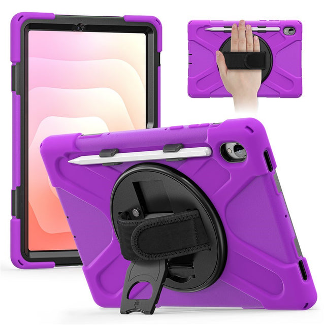 Samsung Galaxy Tab S11 Stötsäkert Skal med 360 Graders Roterbart Stativ & Kardborreband - Lila